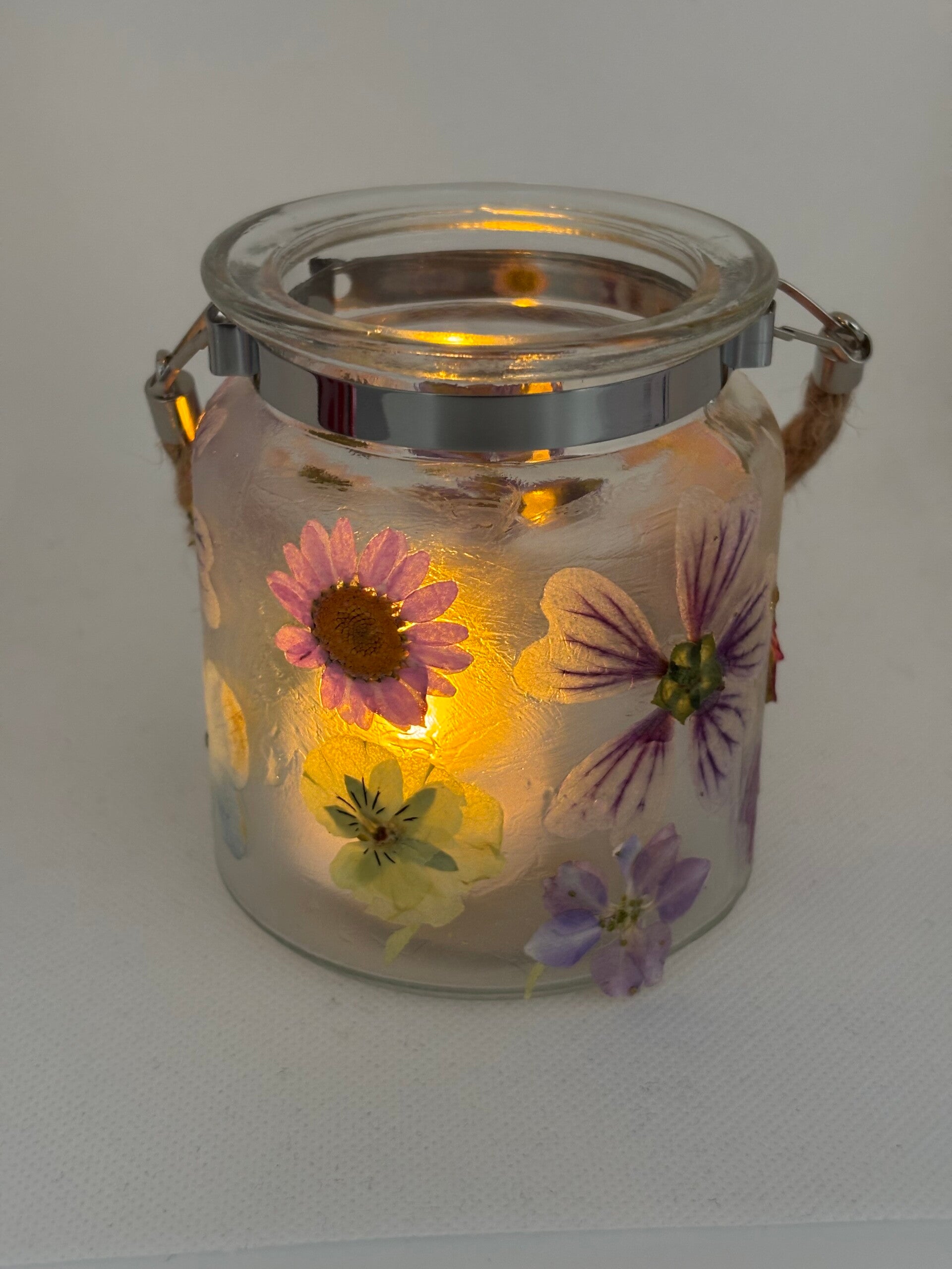 Using tweezers or your hand, gently pick up the pressed flowers and place them onto the area with Mod Podge. Be careful when picking them up as they are fragile.